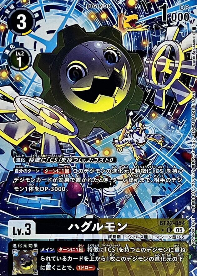 〔進化〕特徴に「CS」を持つLv.2:コスト0【自分のターン】[ターンに1回]このデジモンの進化元に特徴に「CS」を持つデジモンカードが効果で置かれたとき、ターン終了まで、相手のデジモン1体をDP-3000。【メイン】[ターンに1回]特徴に「CS」を持つこのデジモンに重ねられているカードを上から1枚このデジモンの進化元の下に置くことで、≪1ドロー≫。